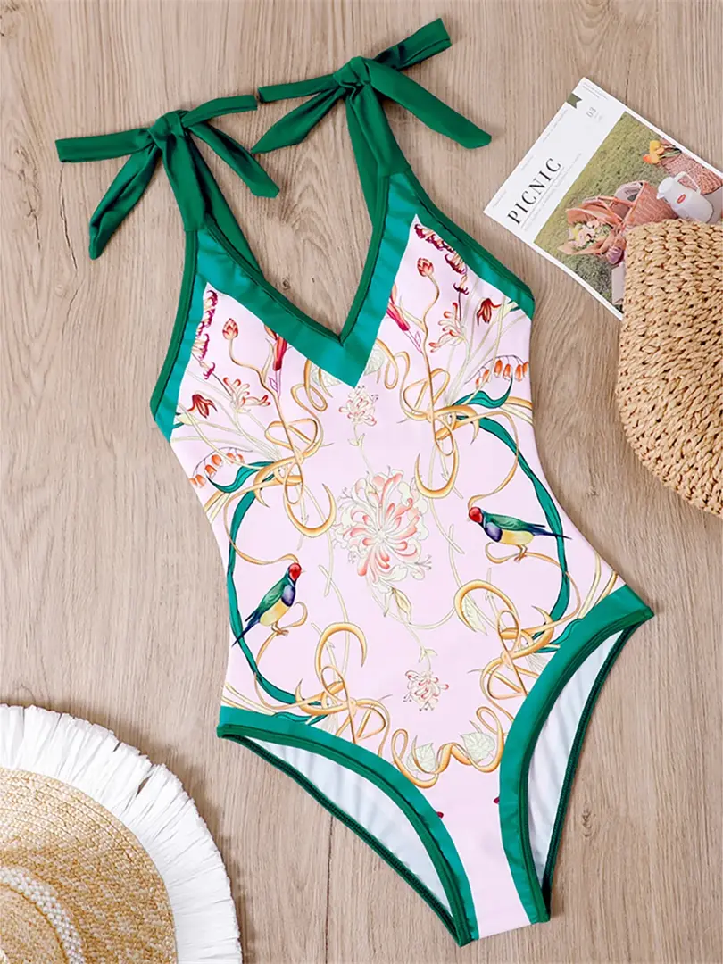 Dive into style and comfort with this one-piece swimsuit. Crafted with a blend of nylon and spandex, it offers a perfect balance of stretch and support for your active lifestyle. The vibrant print adds a touch of personality to your poolside look.