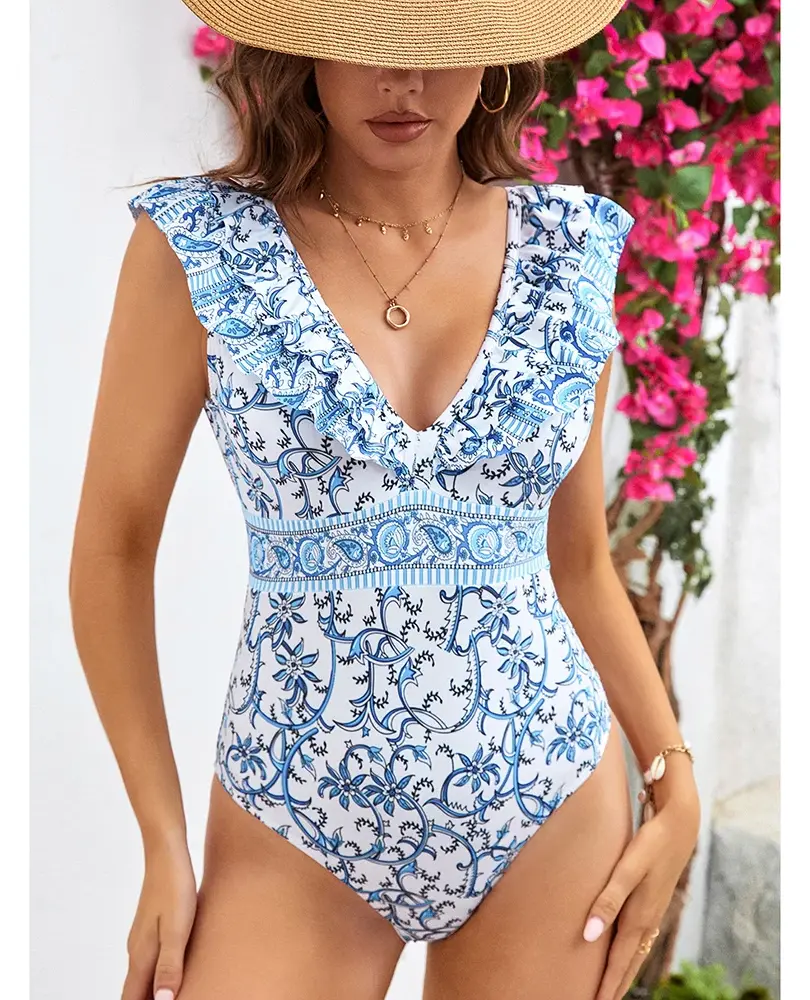Floral Print Ruffled Bikini Set | Low Waist Lace Up Swimsuit | 2023