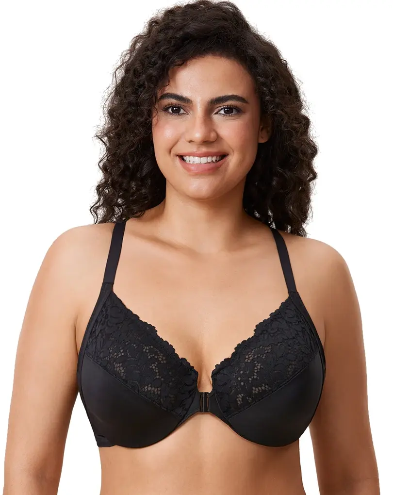 Front Closure Racerback Bra Plus Size Floral Lace Full Coverage Support