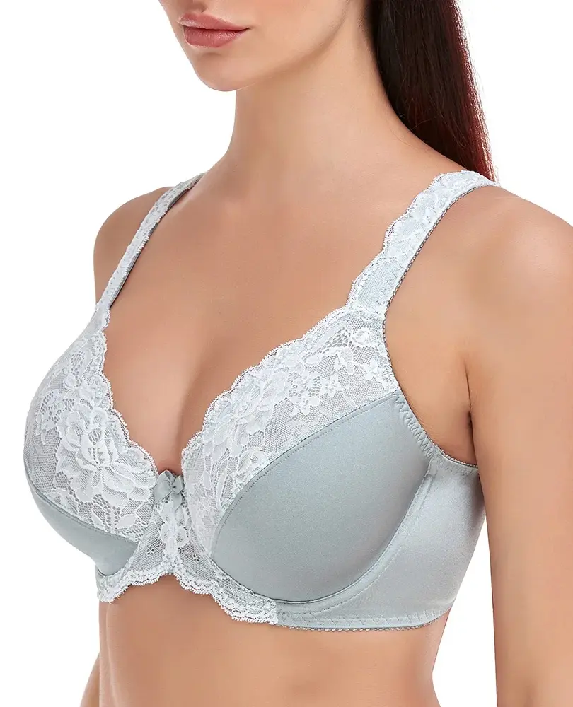 Full Coverage Lace Bra Plus Size Minimizer Embroidery Lingerie