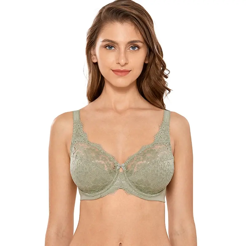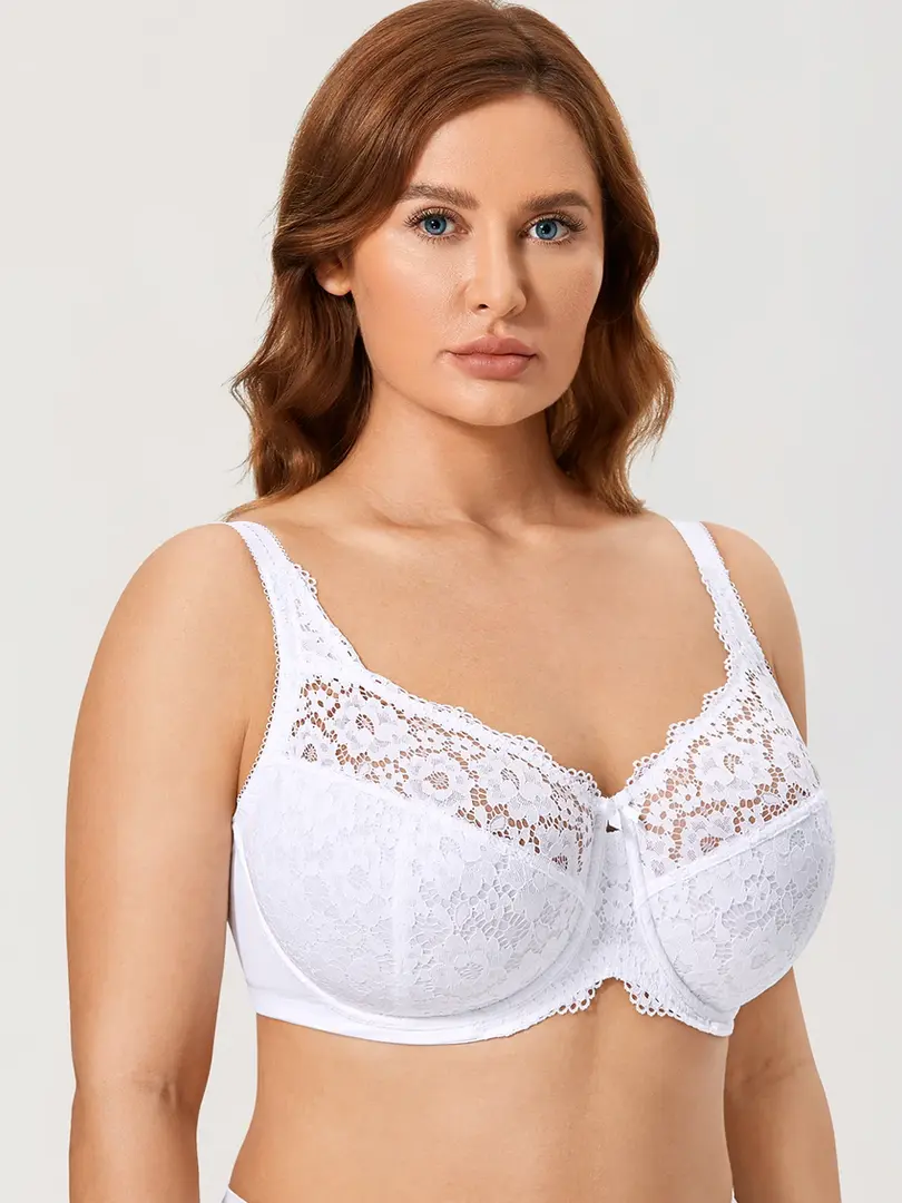 Full Coverage Lace Floral Underwire Bra Plus Size B-DD E F