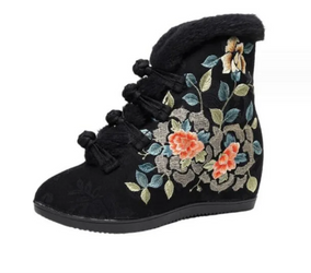 Fur Lined Ankle Boots Cotton Fabric Plush Warm Chinese Style Booties