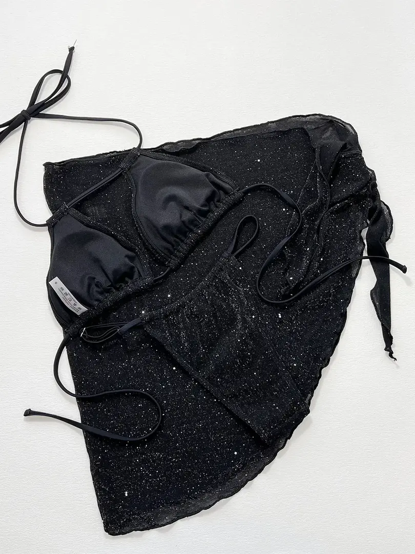 Glitter Bling Halter Bikini Swimsuit Sarong Beachwear Cover Up