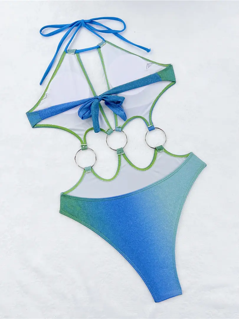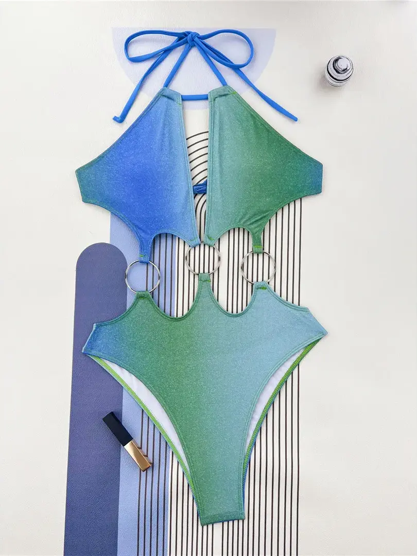 Glitter Halter Cut Out One Piece Swimsuit Bathing Suit