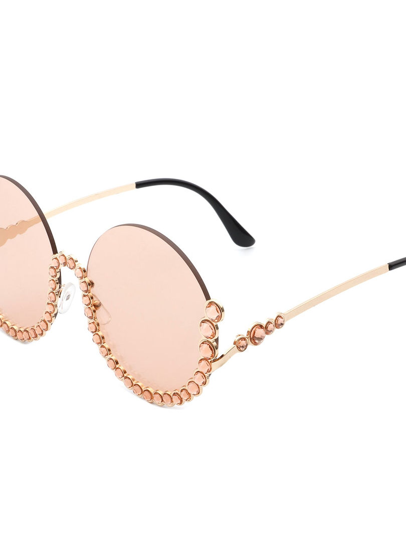 Gloriana - Women Circle Half Frame Oversize Rhinestone Fashion Round Sunglasses