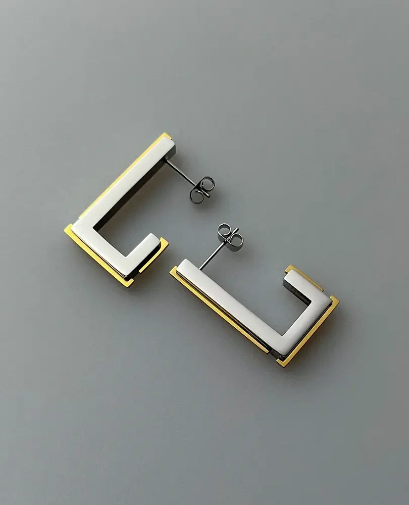 Tags: geometric stud earrings for women, modern architectural jewelry, contemporary design stud earrings, gold stainless steel studs, silver stainless steel studs, lightweight comfortable earrings, unique geometric earring design, everyday modern accessories, office wear earrings, architectural inspired fashion, minimalist geometric studs, edgy contemporary earrings, statement stud earrings small, building inspired jewelry.