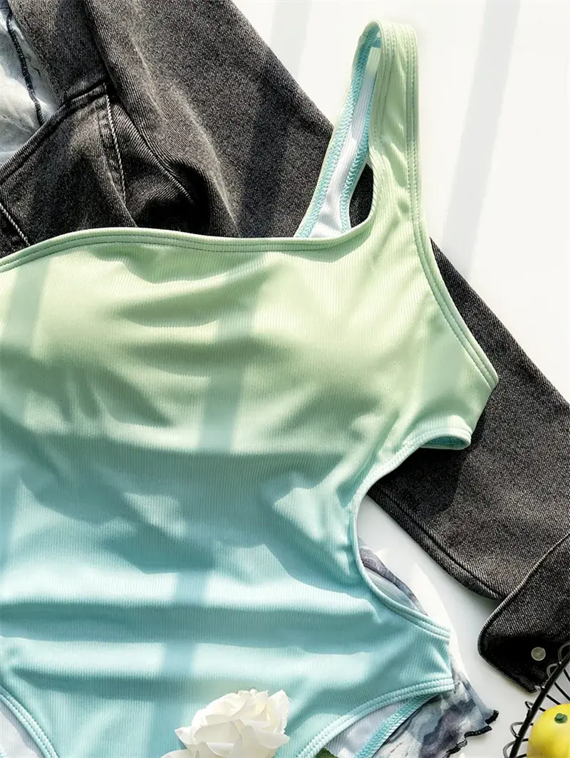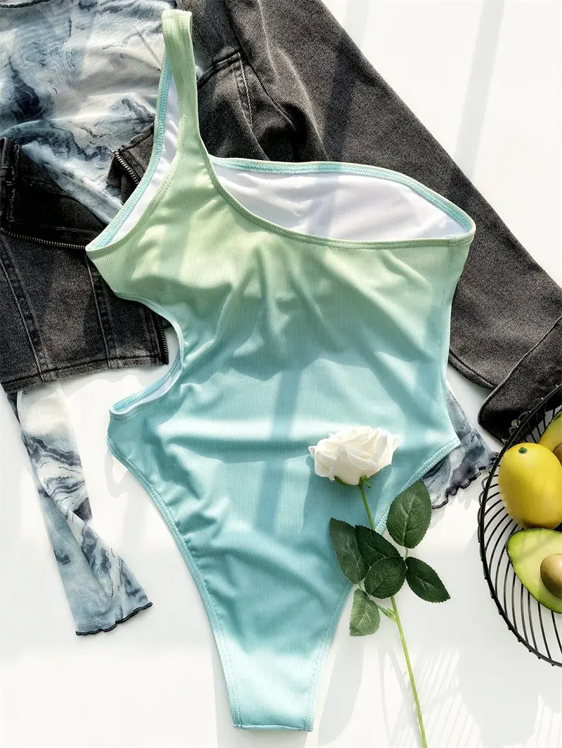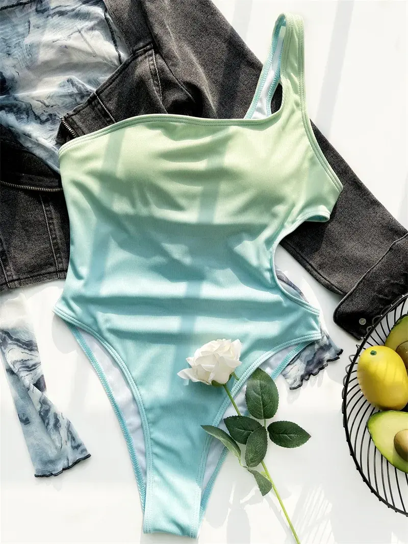 Gradient Print One Piece Swimsuit Cut Out Monokini Swimwear