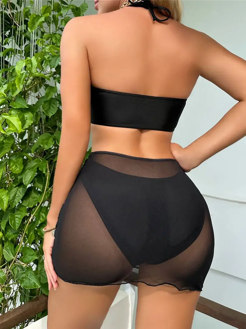 Halter Bikini Set with Skirt & Pearls - Beachwear Swimsuit