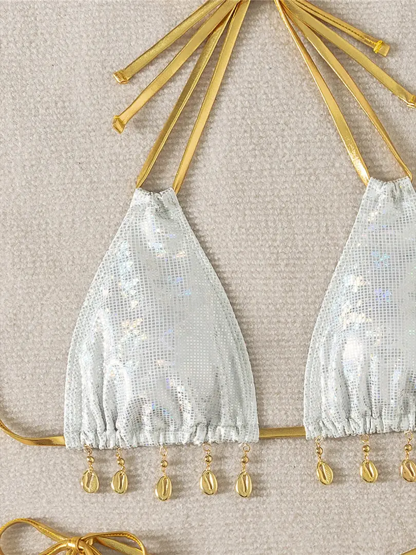 Halter High Leg Cut Bikini Swimsuit Sequins Swimwear
