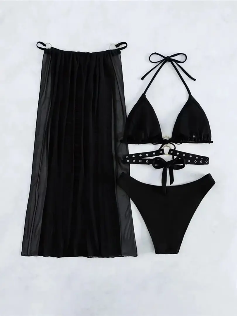 Halter High Split Skirt Bikini Swimsuit Beachwear Bathing Suit
