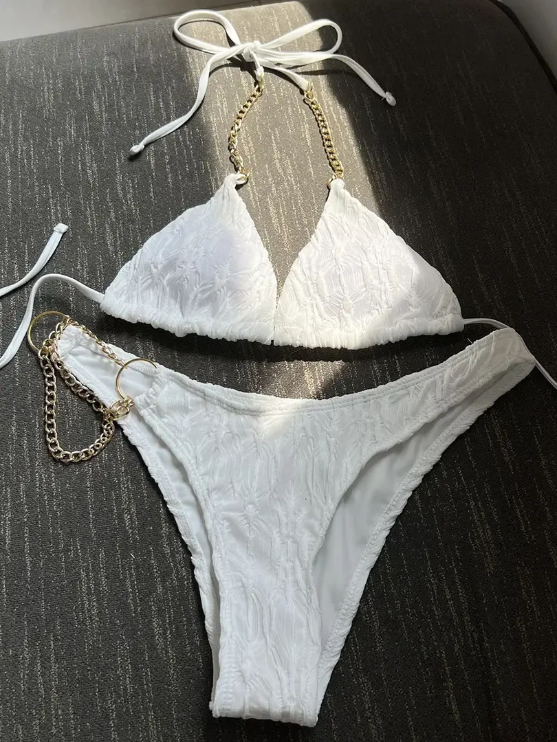 Halter Metal Chain Bikini Swimsuit Two Piece Bathing Suit