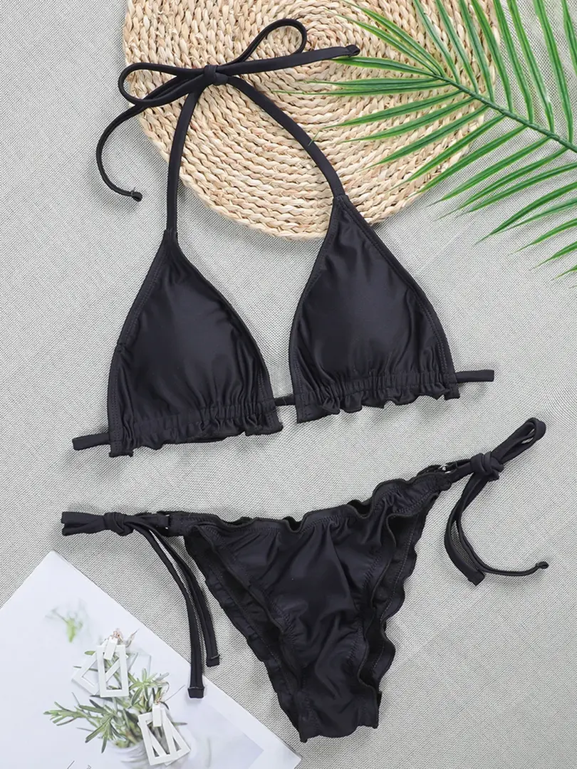 Embrace the sun and surf in this comfortable and stylish bikini set. Designed with a supportive wire-free construction, this set offers a flattering fit for a variety of body types. The solid color and beach-inspired style make it perfect for a day of fun in the sun.