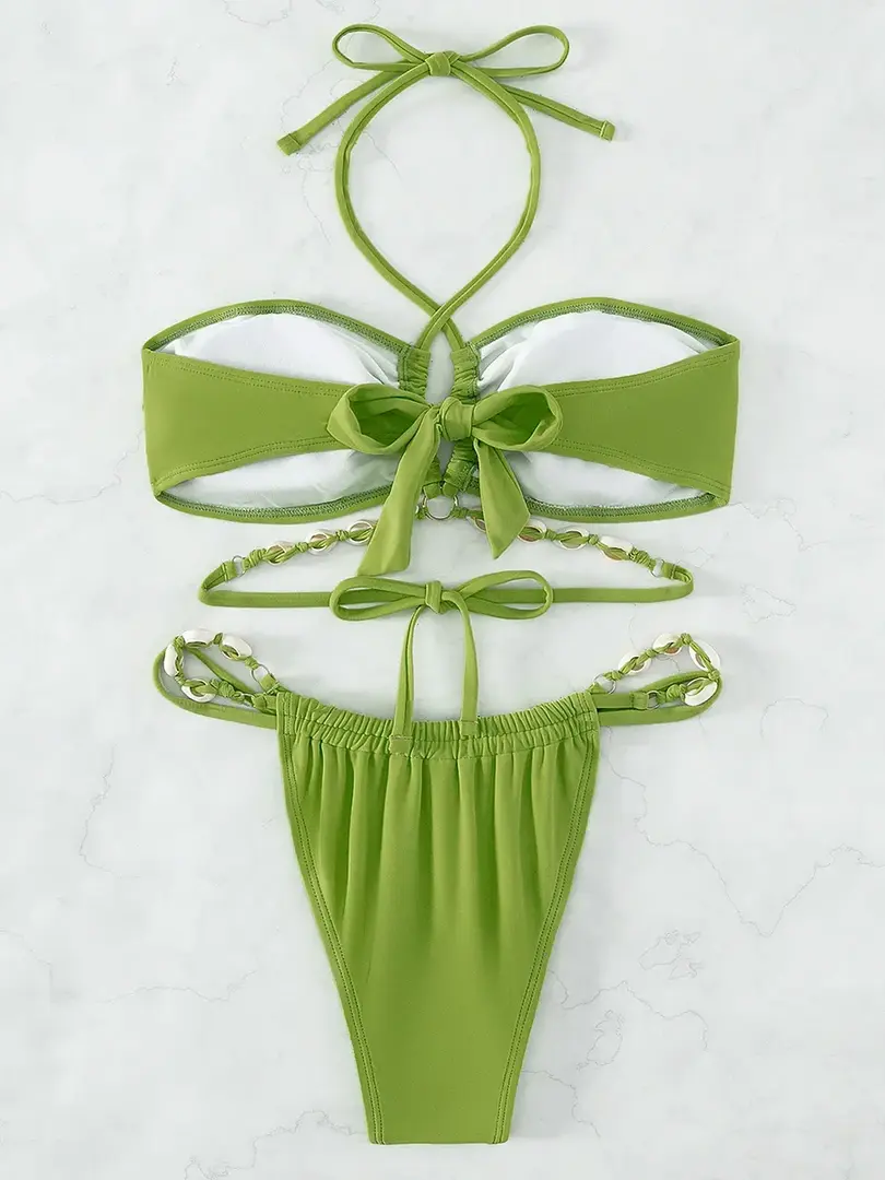 This bikini set is perfect for women who want a comfortable and stylish option for their next beach trip or pool day. The wire-free design provides support without sacrificing comfort, while the solid pattern and young style make it a versatile choice for any occasion. This bikini set is made from a blend of polyester and spandex, making it both durable and comfortable to wear. This bikini set is ideal for a variety of occasions, including swimming, sunbathing, and relaxing by the pool.