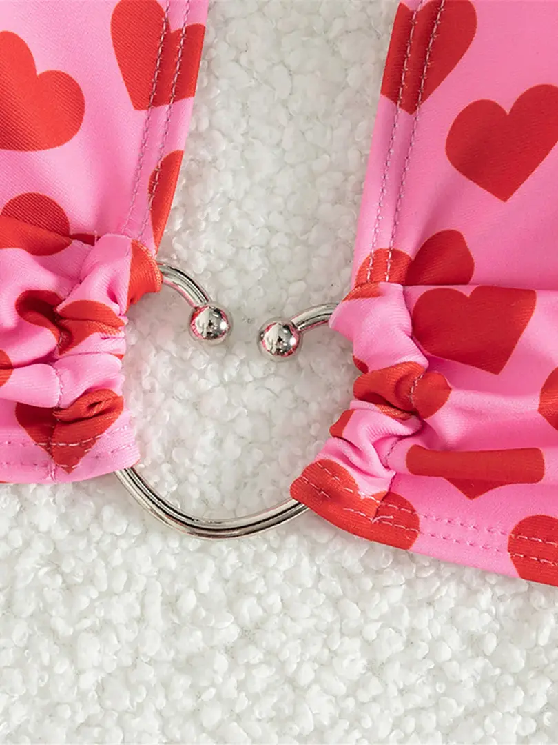 Heart-Shaped Printed Bikini Swimsuit Mid Waist Two-Piece