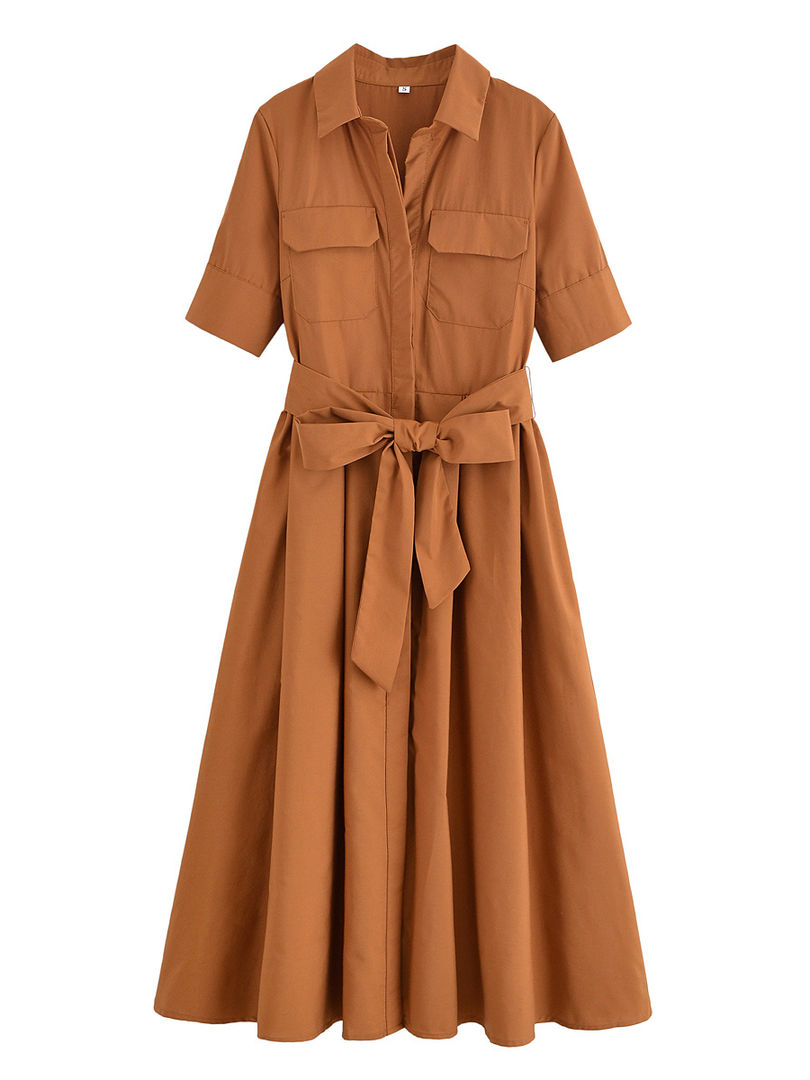 Tags:summer midi dress with sleeves, short sleeve poplin dress, women's office dress summer, elegant summer work dress, slim fit summer dress, A-line midi dress for women, turn down collar dress, single breasted midi dress, solid color summer dress, lightweight summer office dress, summer dress with sash, women's summer dress 2025, short sleeve dress for middle age women, ankle length summer dress for women.