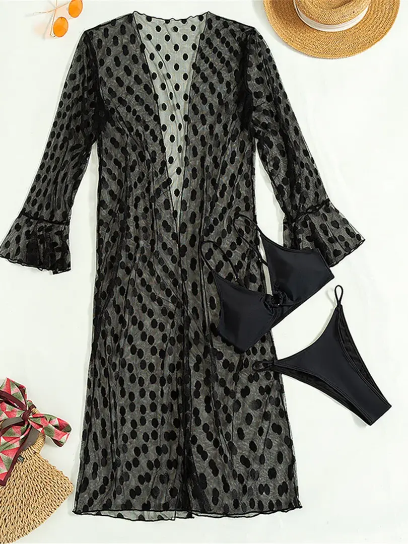 High Cut Bikini Swimsuit Cover Up Three Piece Bathing Suit