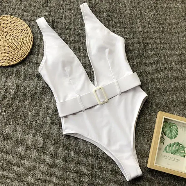 High Cut Neon One Piece Swimsuit - Deep V - Waistband