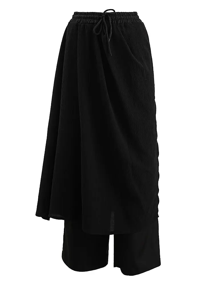 High Elastic Waist Black Irregular Spliced Long Wide Leg Pants New Trous