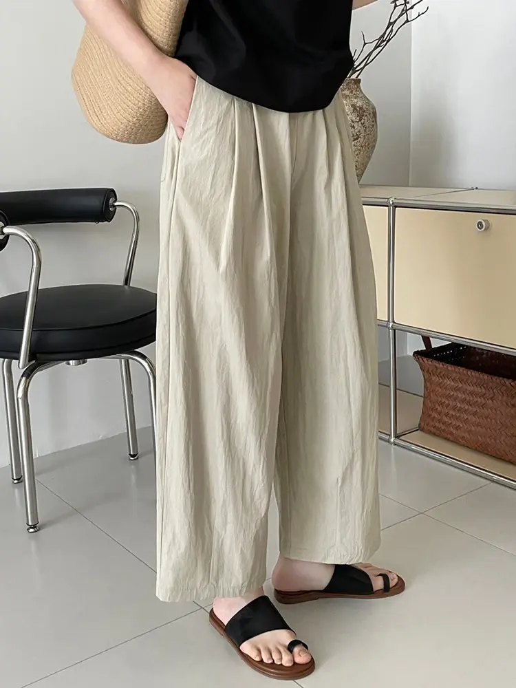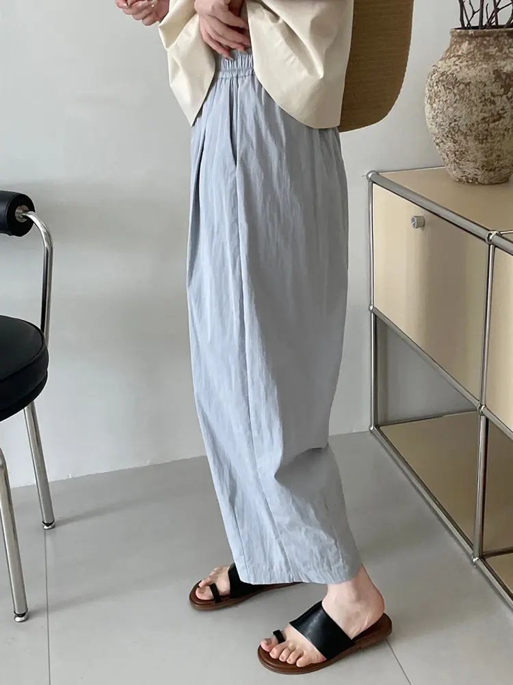 High Elastic Waist Blue Pleated Thin Long Wide Leg Pants New Trousers Women Fas