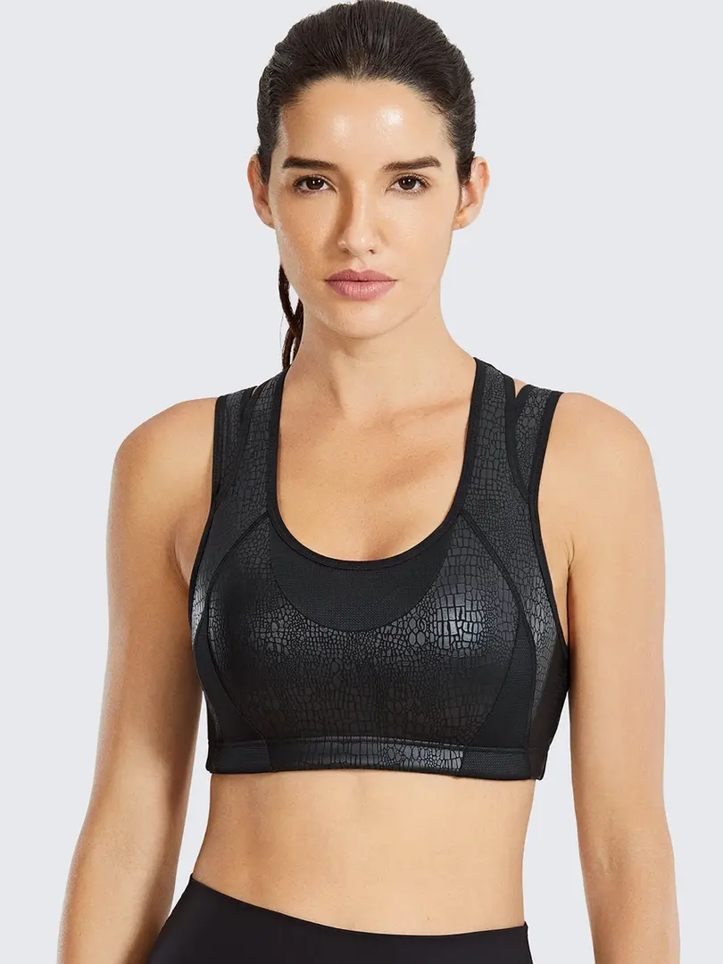 High Impact Wirefree Sports Bra Racerback Bounce Control Mesh Workout Top