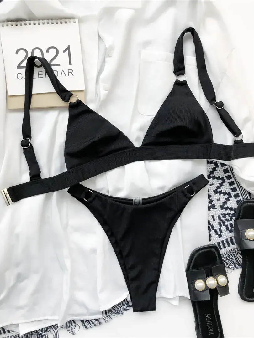 High Leg Cut Ribbed Bikini Swimsuit Two Piece Bathing Suit