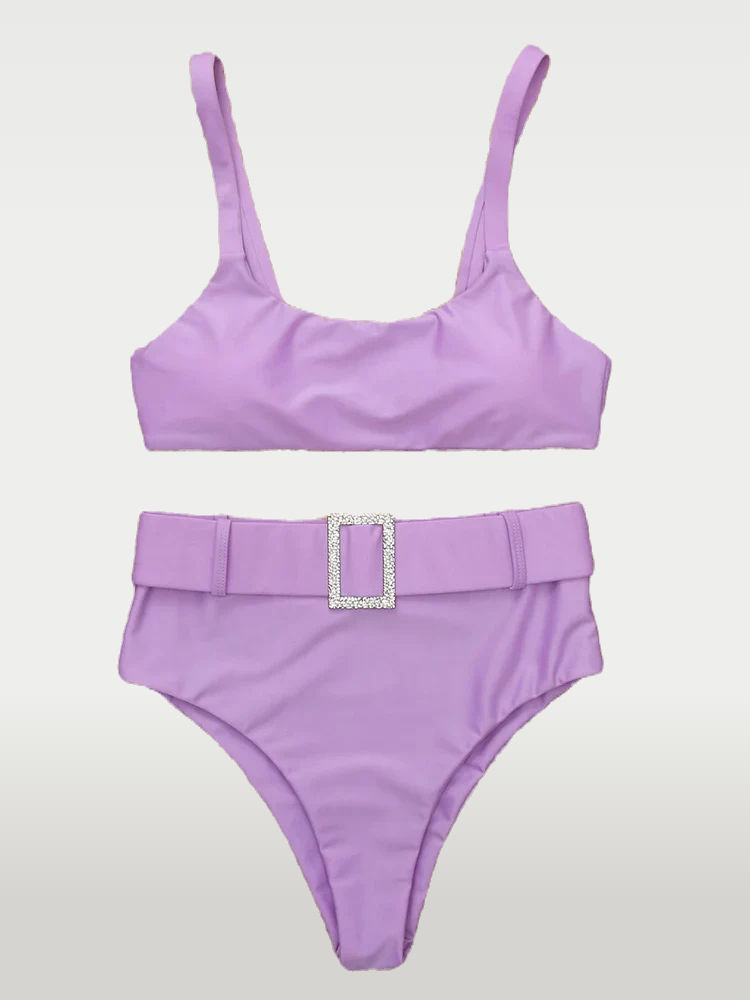 High Waist Bikini Swimsuit with Shiny Waist Belt
