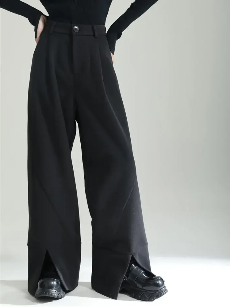 High Waist Black Casual Wooden Wide Leg Thick Pants New Loose Fit Trouser