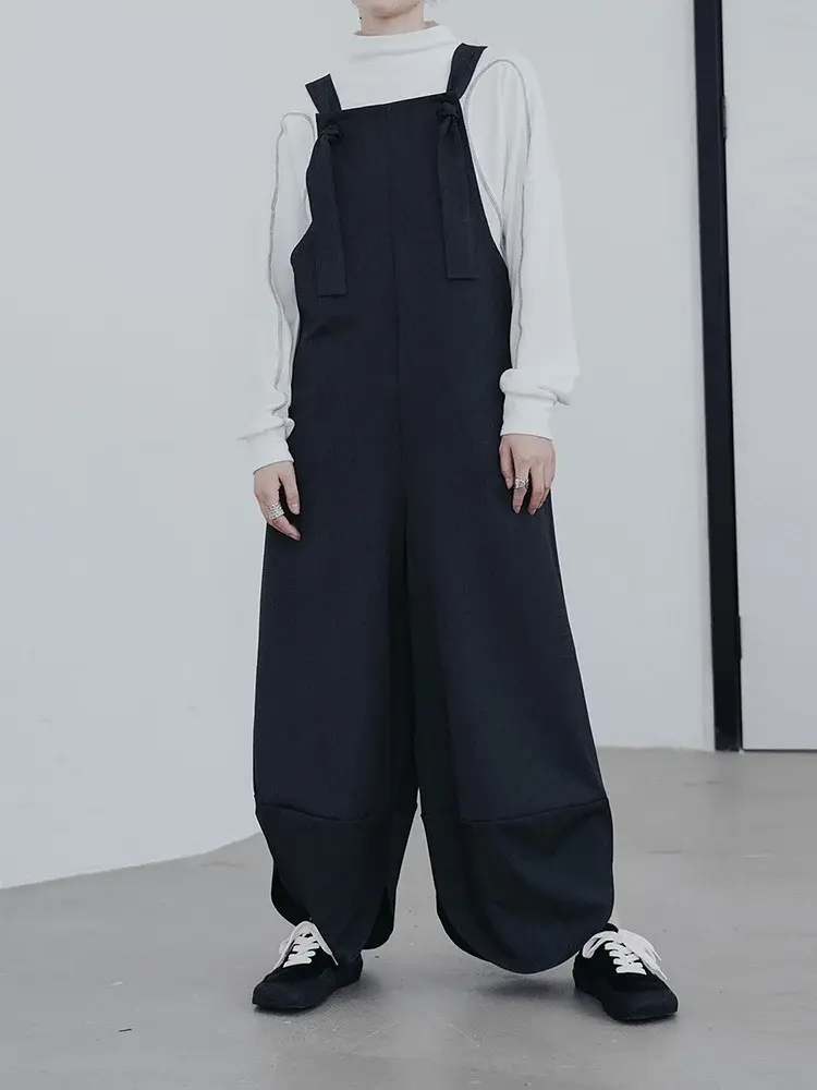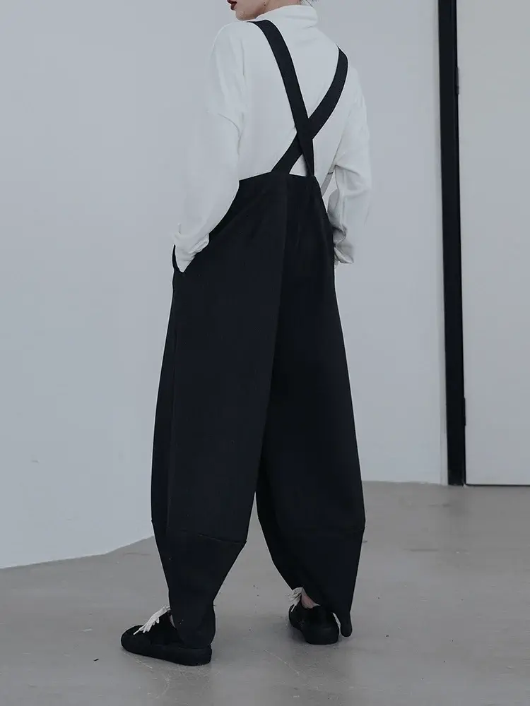 High Waist Dark Gray Brief Long Big Size Overalls Pants New Loose Fit Trou