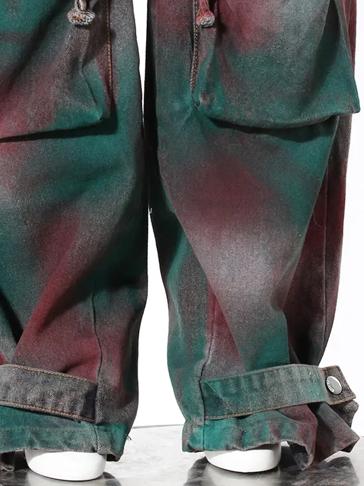 High Waist Printed Pockets Long Casual Cargo Pants Jeans New Women Trouser