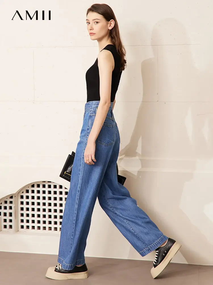 High Waist Wide Leg Jeans Loose Fit Minimalist Spring Pants