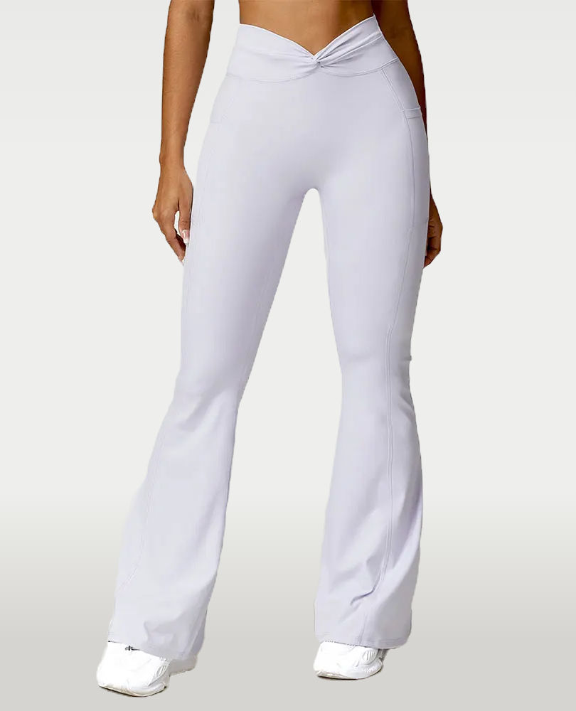 These full-length pants are designed with a flared leg and elastic waist for ultimate comfort and style during any workout.