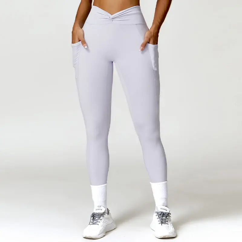High Waisted Workout Leggings | Cross Yoga Running Pants with Pockets
