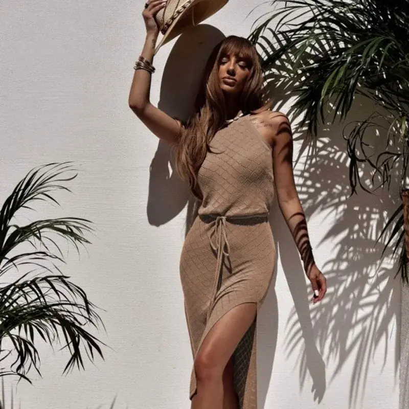 Hollow Out Lace Up Beach Knit Dress Backless Sleeveless Crochet Cover Up