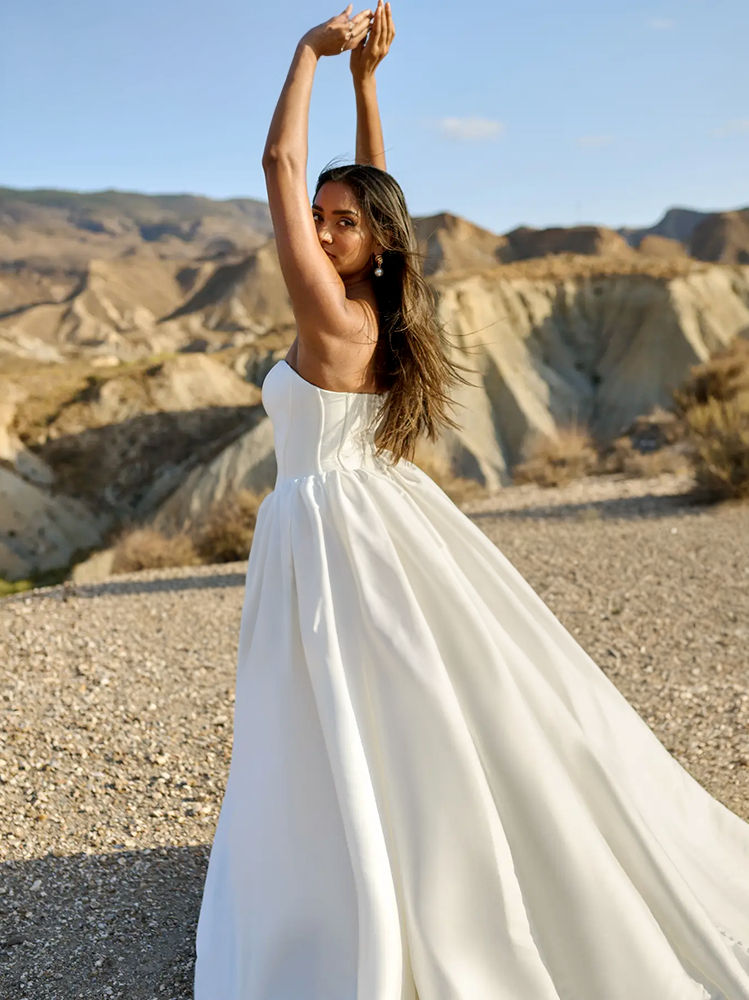 Tags:A-line satin wedding dress, sweetheart neckline wedding gown, simple pleated wedding dress, sleeveless satin bridal dress, floor-length wedding dress, classic style wedding dress, wedding dress with built-in bra, wedding dress for pregnant women, customized wedding dress, affordable satin wedding dress, elegant sweetheart bridal gown, minimalist A-line wedding dress, satin wedding dress with pleats, simple classic wedding dress.