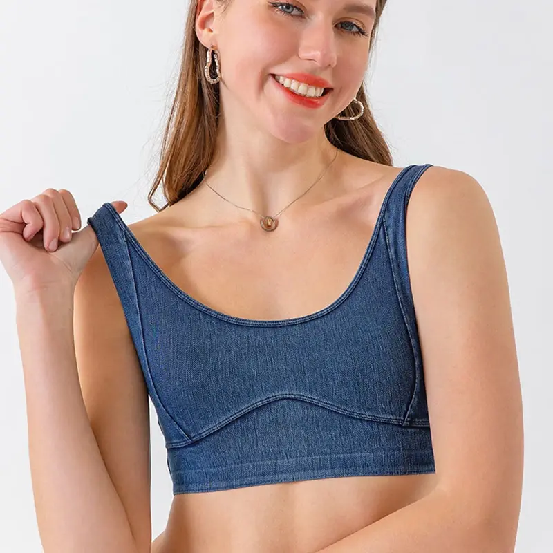 Imitation Denim Sport Bra Push Up Gym Top Training Recreation Yoga