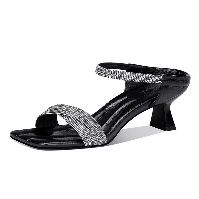 Tags: women's square toe rhinestone mules, slip on high heel sandals with back strap, elegant sequin party shoes for women, silver bling sandals for wedding guest, black rhinestone heels with unique heel, 6cm heel comfortable party sandals, summer evening shoes with sparkle, rhinestone narrow band high heels, white sequin sandals for summer events, sculptural heel slip on sandals, elegant bling high heel mules, back strap party sandals for women, square toe slip on heeled mules