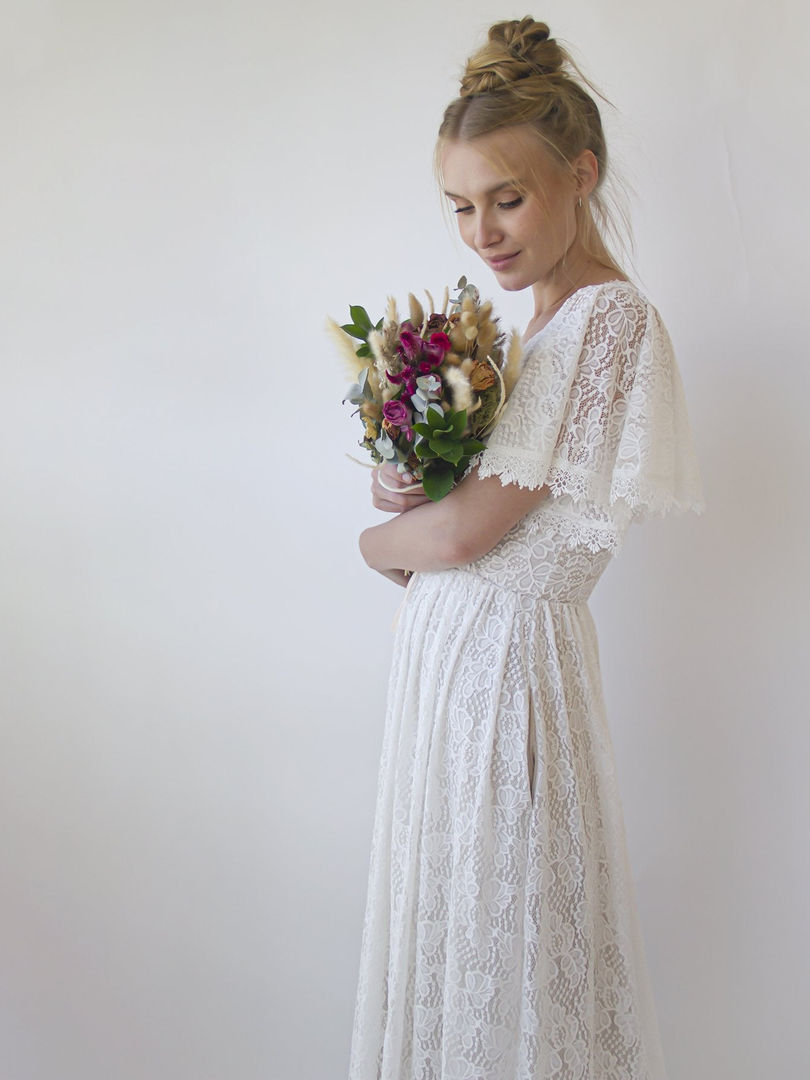 This boho-chic wedding dress style is perfect for a beach or garden wedding.