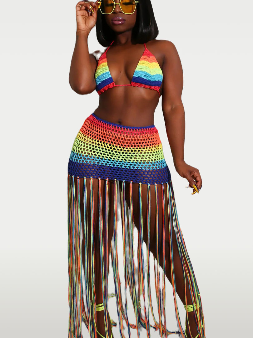 Knit Bra Top and High Waist Skirt Wrap Two Piece Set
