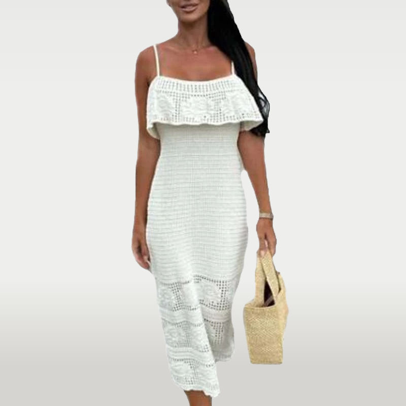 Knitted Beach Cover Up Dress with Straps and Flounce Hem
