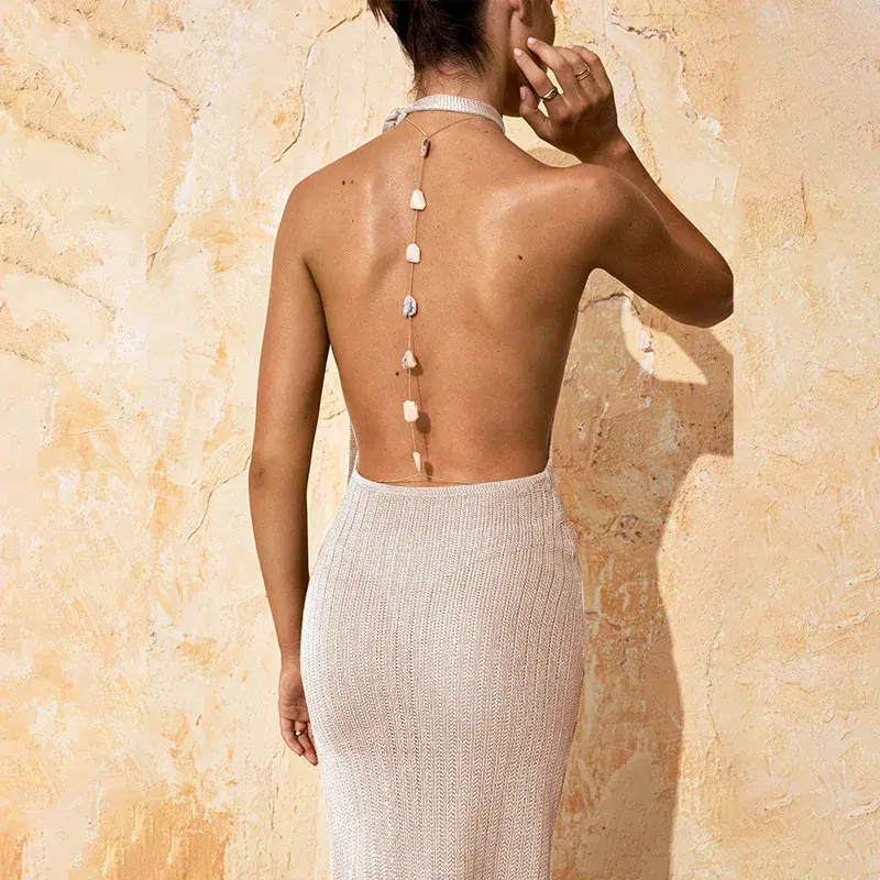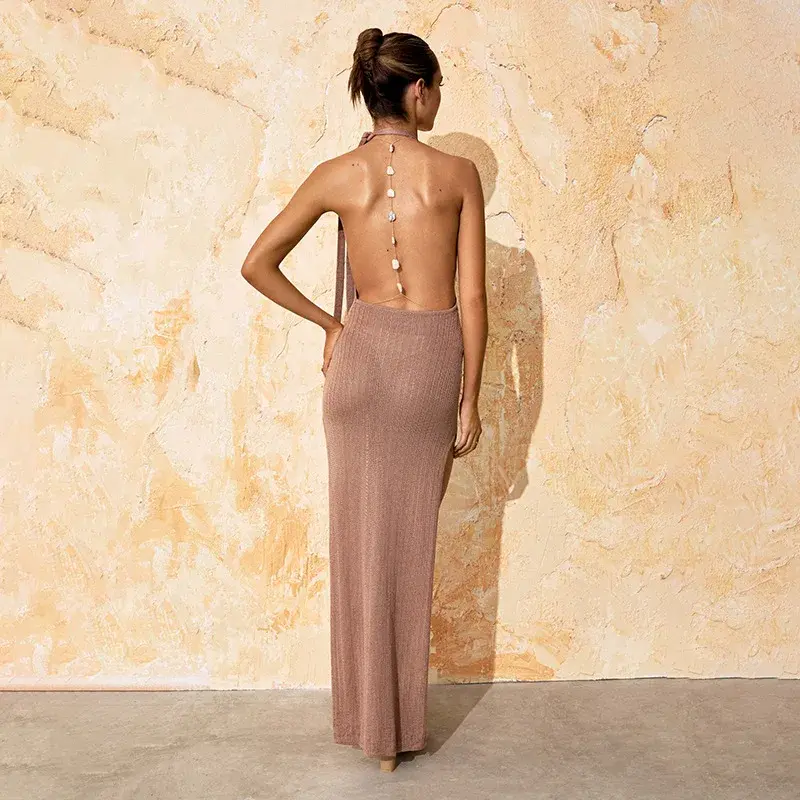 Knitted Beach Dress | Long Swimwear Cover Up | Backless Crochet Cover Up Dress