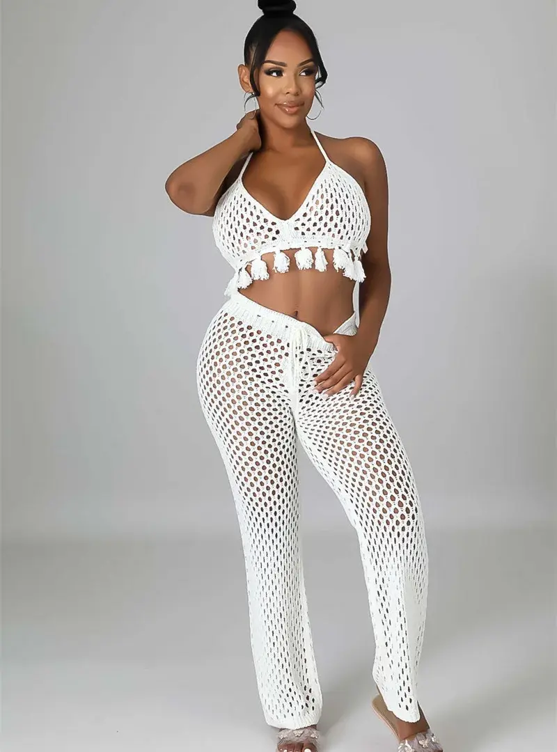 Knitted Crop Top & High Waisted Bikini Bottom Swimsuit Set