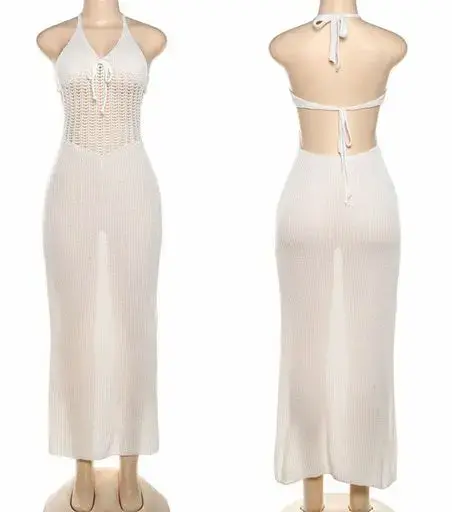 Knitted Swimsuit Cover Up Beach Hollow Out Bodycon Dress