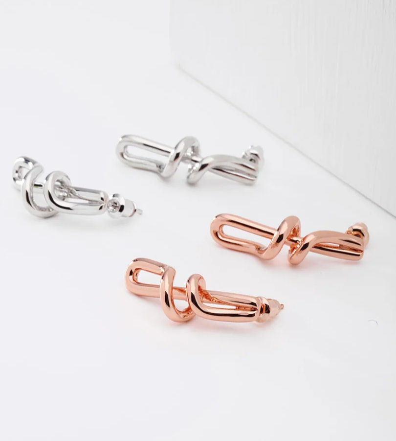 Looking for that perfect accessory to lift your daily look with a modern edge? These knot line stud earrings offer just that, bringing a sophisticated touch with their unique design. Crafted from lightweight brass and available in gold, rose gold, or silver plating, they’re all about easy style and versatility for those who appreciate minimalism with a distinctive twist.