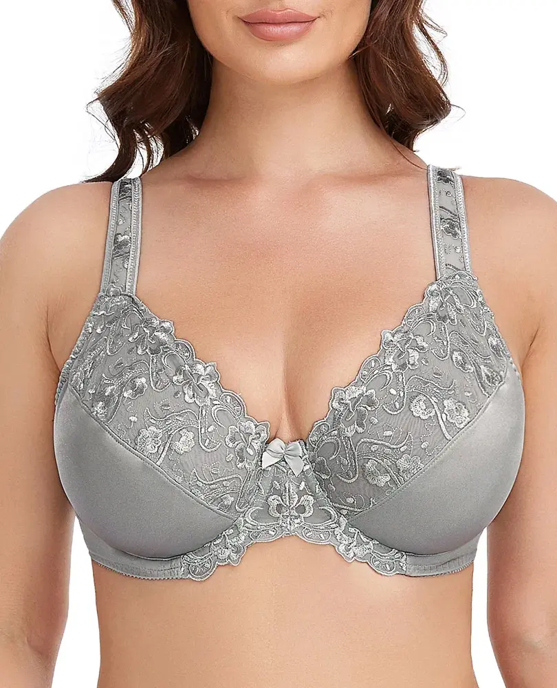 Lace Embroidery Bra Full Coverage Plus Size Breathable Comfortable Underwear