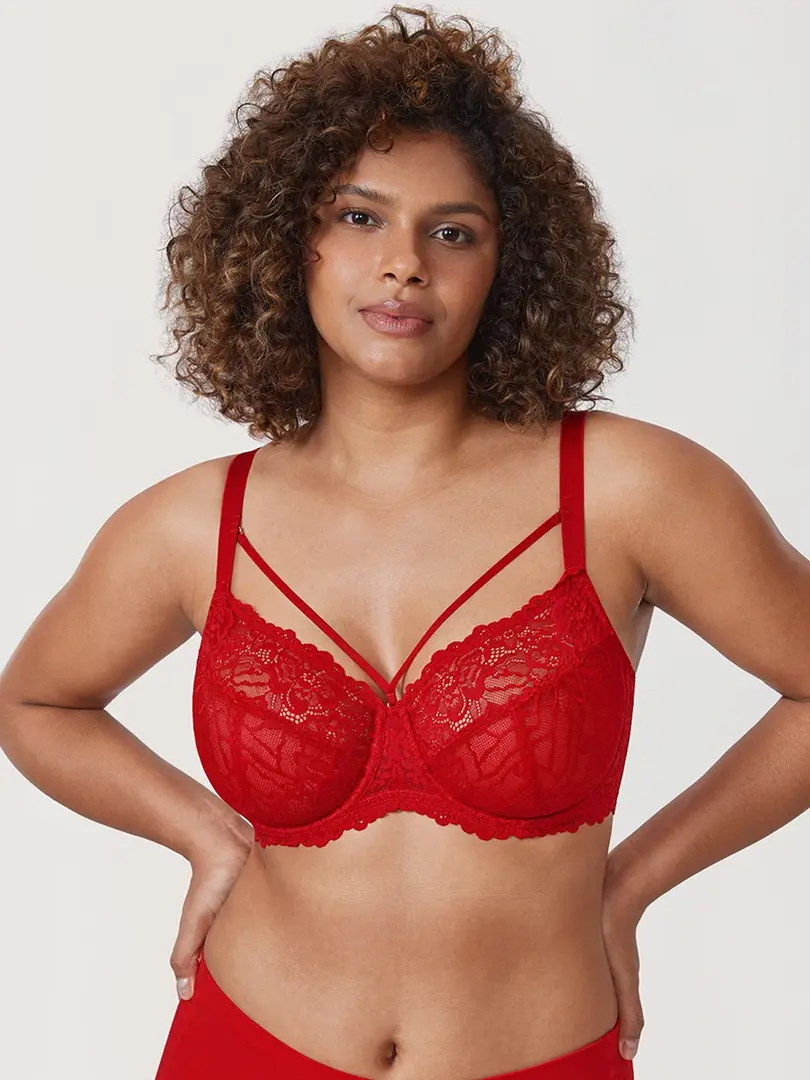 Lace Floral Plus Size Minimizer Bra Full Coverage Unlined Underwire