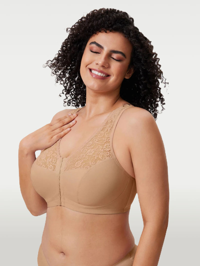 Lace Front Closure Bra - Full Coverage Wirefree Comfortable Breathable