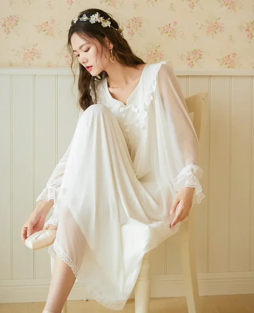 Lace Nightgown Sleepwear Mesh Modal Dressing Gown White Lingerie