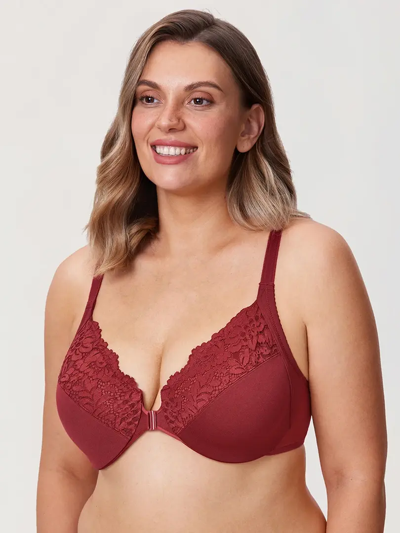 Lace Racerback Front Closure Bra Plus Size Full Figure T-Shirt Bras