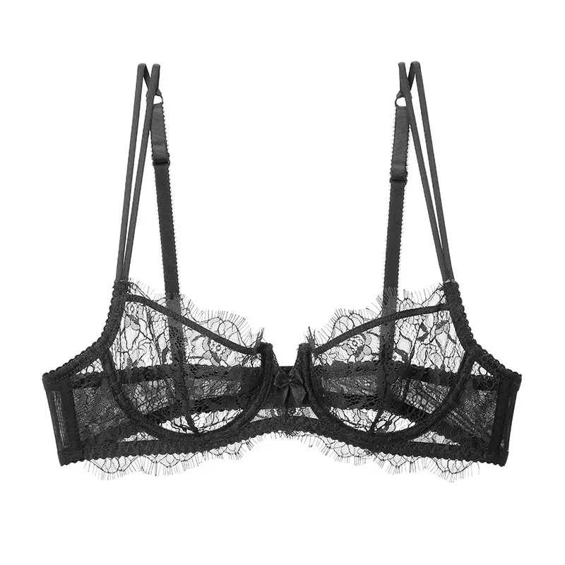 Lace Sexy Transparent Ultra Thin Bra Hollow Out Bowknot Push Up Underwear