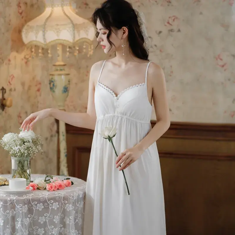 This summer nightgown is a perfect choice for a comfortable and stylish sleepwear option. Crafted from soft cotton, this sleeveless nightdress features a V-neckline and lace detailing for a touch of elegance. It's the ideal choice for warm nights, offering breathability and a relaxed fit. This nightgown is made from 100% cotton, ensuring a soft and breathable feel against your skin. This nightgown is perfect for relaxing at home, enjoying a peaceful night's sleep, or lounging on a warm summer evening.
